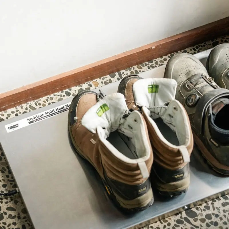 Nu-Klear Multi Heat Mat is the ultimate Kiwi essential for year-round warmth and drying. Use it as a shoe and boot dryer for muddy gumboots, snow boots, or mountain bike shoes, or slide it under your desk in winter as a cosy foot warmer.
